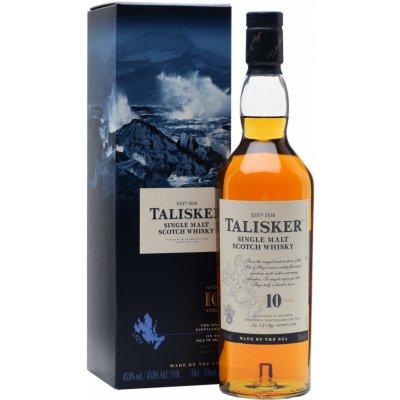 Talisker 10 Years Old, Skye Island Vznikla na ostrově Skye ve Vnitřních Herbidách, v místě, které je jen zdánlivě poklidným. Zdejší mlhavé počasí se velice rychle dokáže změnit v divoké a bouřlivé. Chuť této desetileté whisky proto na patře přímo exploduje. Na ostrově Skye je jedinou palírnou. Výborný příklad typické ostrovní sladové whisky - má nasládlé aroma mořských řas s plně kořeněným charakterem a ostrou rašelinovou příchutí. Jako první značka na světě získal Talisker v roce 2002 hned dvě ceny: za nejlepší sladovou whisky mladší i starší dvanácti let!